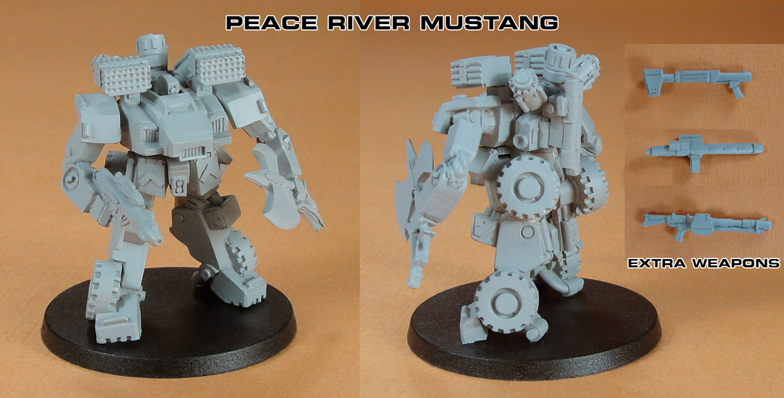 The new Mustang miniature for Peace River is now available for Pre-Order on the Dream Pod 9 Online Store. The Mustang is also included in two new squad packs available for Peace River, the Anti Rover Squad (DP9-PRAR, 4 minis: 3x Pitbull, 1x Mustang) and the Tactical Response Squad (DP9-PRTR, 4 minis: 3x Gladiator, 1x Mustang). Orders for all of these will start shipping after Friday (October 31st, 2014). Here is a direct link to the Peace River faction ordering page for all interested.