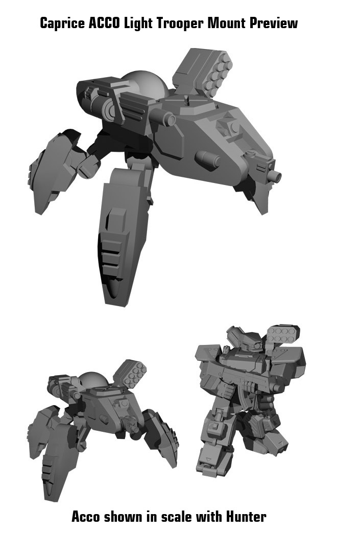 A great Kickstarter updated for everyone today, our 3D modeler finished up a preview of Caprices new Acco light trooper Mount, to check out.