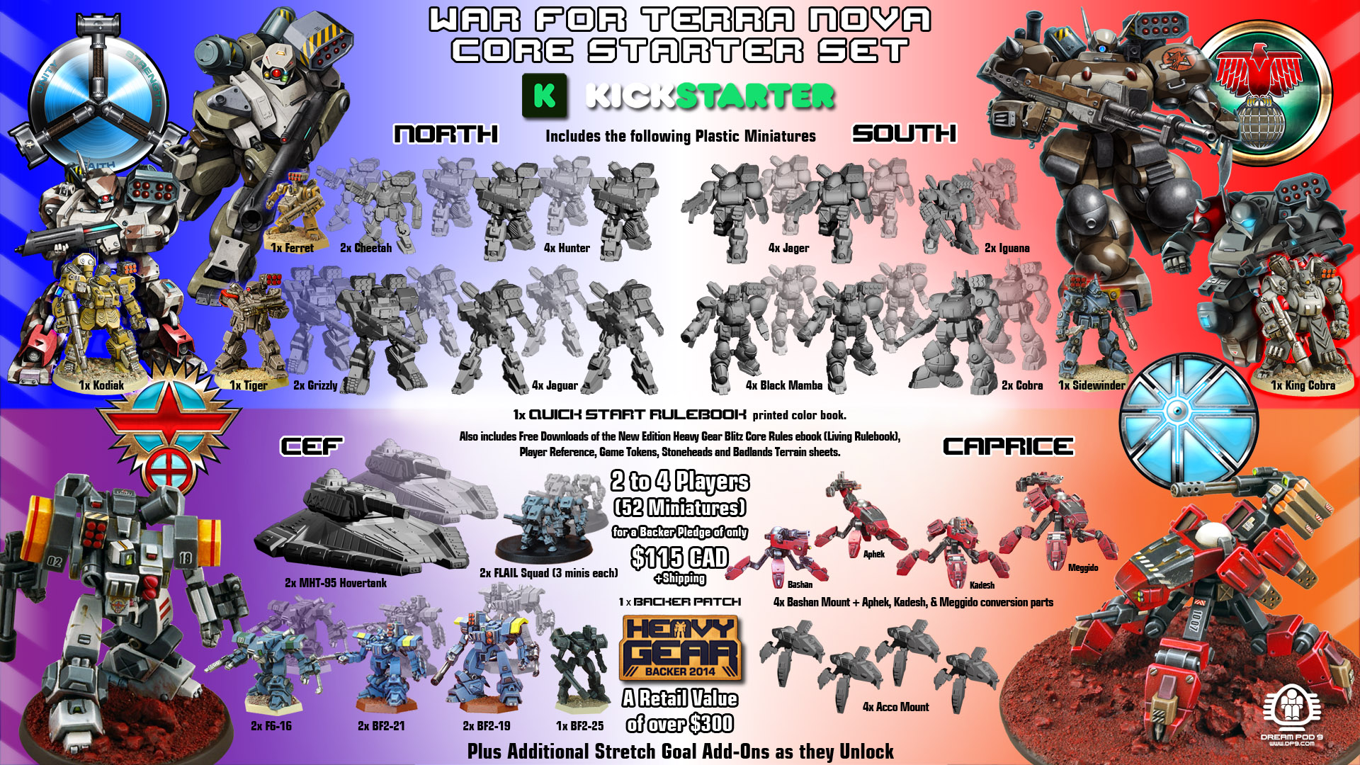 The Northern Kodiak stretch goal is now unlocked and we'll be adding 1 to all the Core Starter Sets. This brings the number of miniatures included in the War for Terra Nova – Core Starter Set up to 52. We have also added the Kodiak to the Pledge Manager Add-Ons Available section at $10 extra pledge each for Backers who want a second or third one for their Northern Strike or Fire Support squads or as a Support Unit.