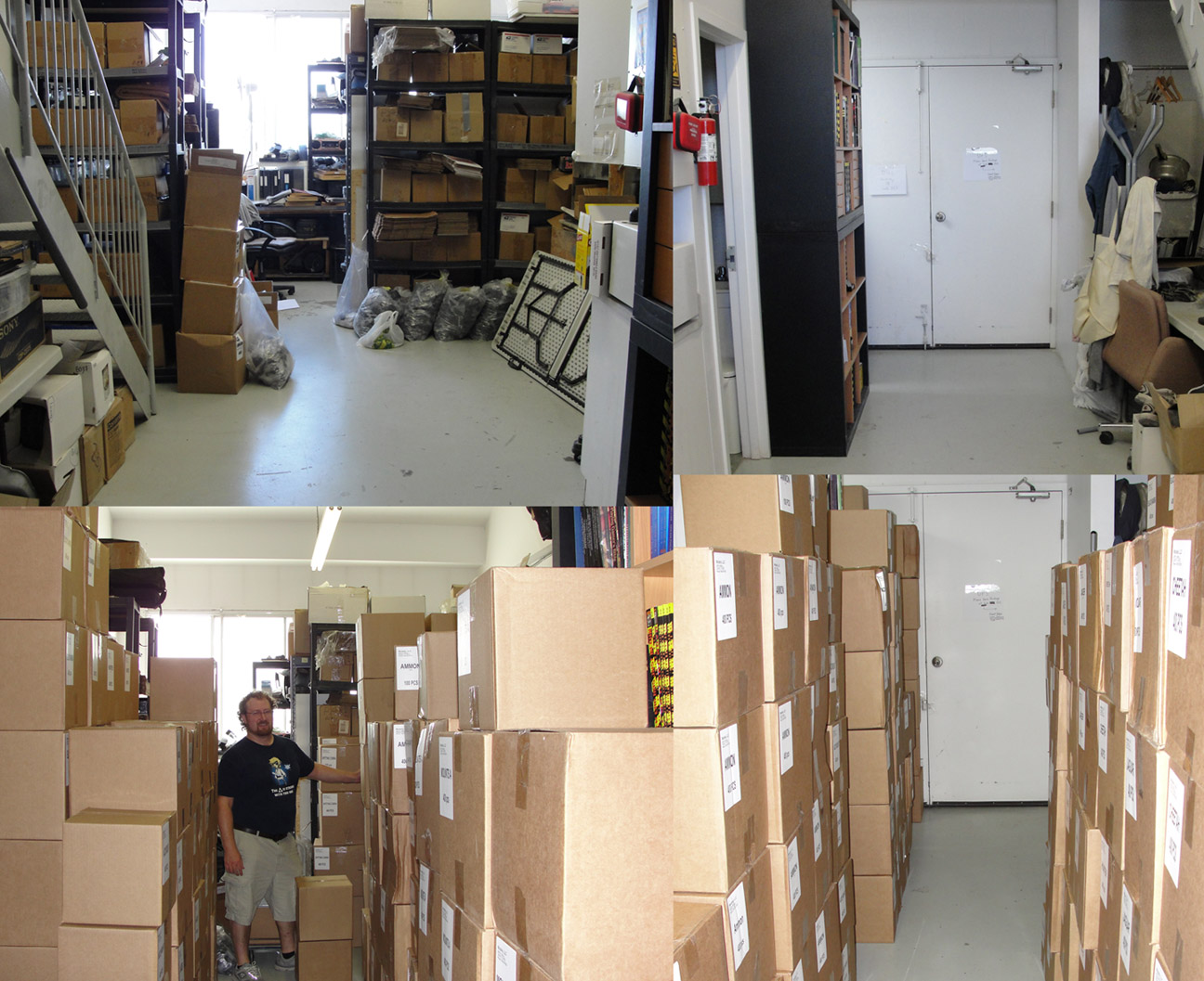 We took a few photos to show everyone. The first image attached with this post shows the office before all the boxes arrived and then after we had them all crammed in like a giant game of tetris. Second image shows the first skid being removed from the FedEx truck, Dave in the buildings freight elevator with 4 of the skids, skids in the hallway outside our office (while we were trying to fit all the boxes into the office), and a photo of Robert in the small corridor left between the rows of boxes to get the door. Third image is several photos of the stacks of boxes with Dave surrounded by them.