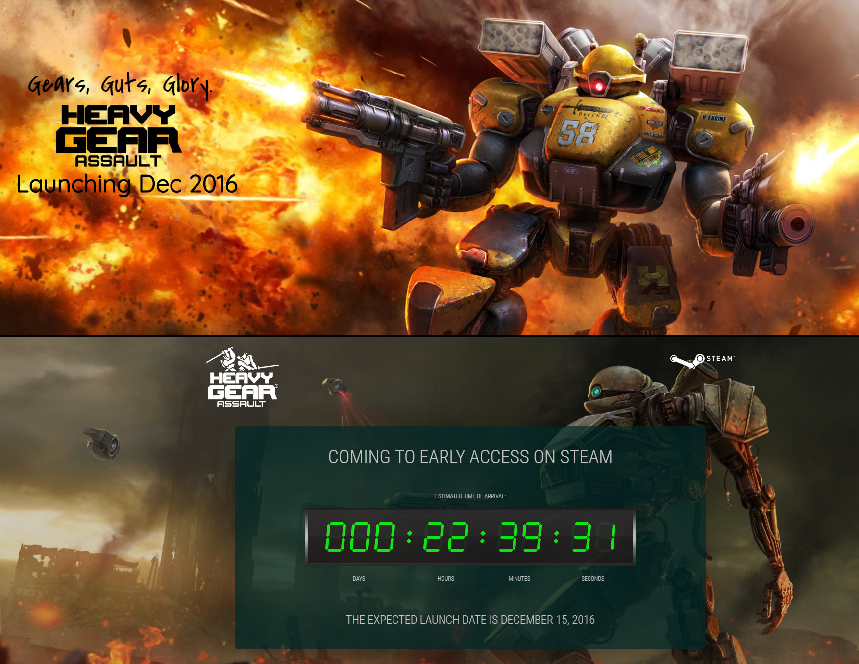 Stompy Bot Productions (CSE: BOT) today (December 9th, 2016) confirmed that its award-winning Heavy Gear® Assault will be launching on December 15, 2016 for PC through Steam Early Access. Developed by MekTek Studios, Heavy Gear® Assault is a metal-grinding, heart-pounding, combination of fast-paced mech warfare, fueled by corporate sponsors, on a distant alien planet known as Terra Nova.