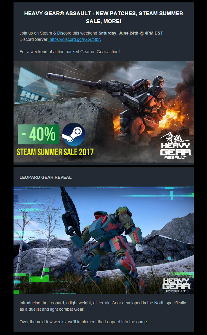 Also, this weekend the Heavy Gear Assault computer game is available at a special price on Steam as part of the Steam’s Summer Sale. Plus a new patch is available for the game and Stompy Bot has preview the new Northern Leopard Gear that will be added to the game in the coming weeks. Check out the attached image of the Leopard screen shot and you can visit the Heavy Gear Assault Page on Steam via the following link.